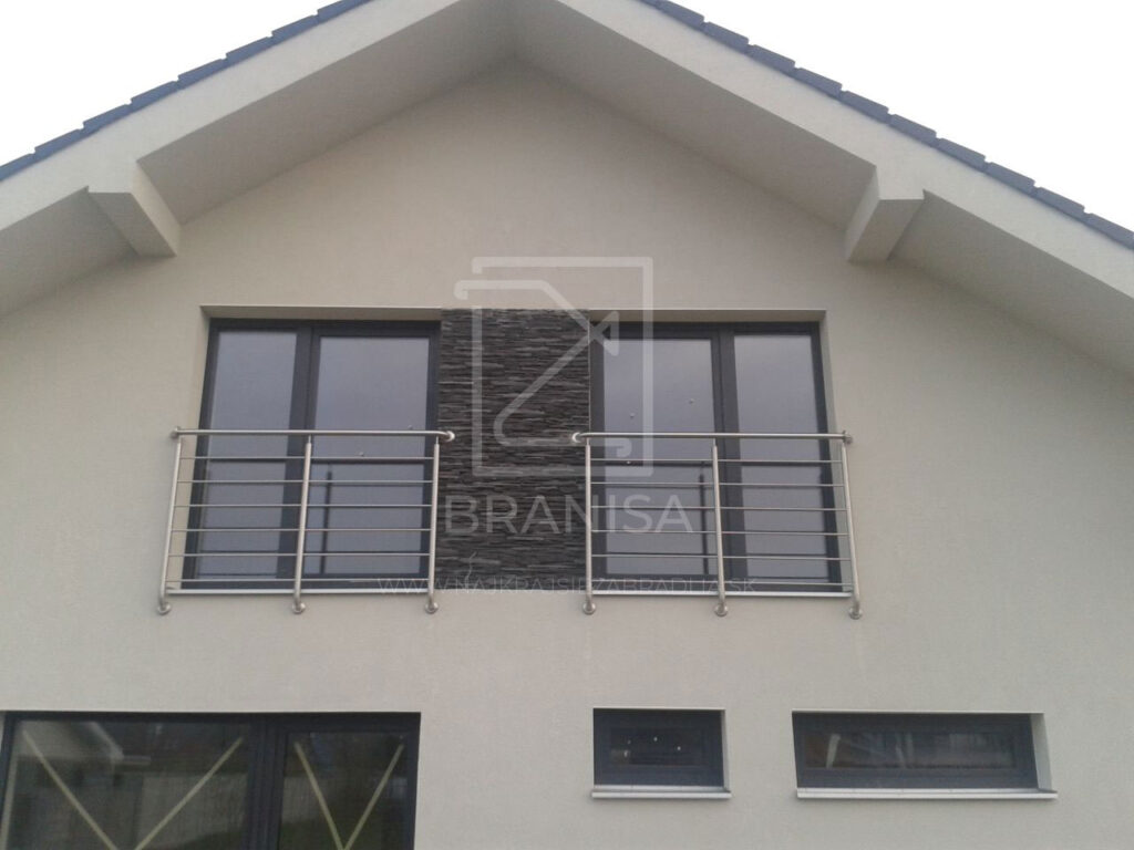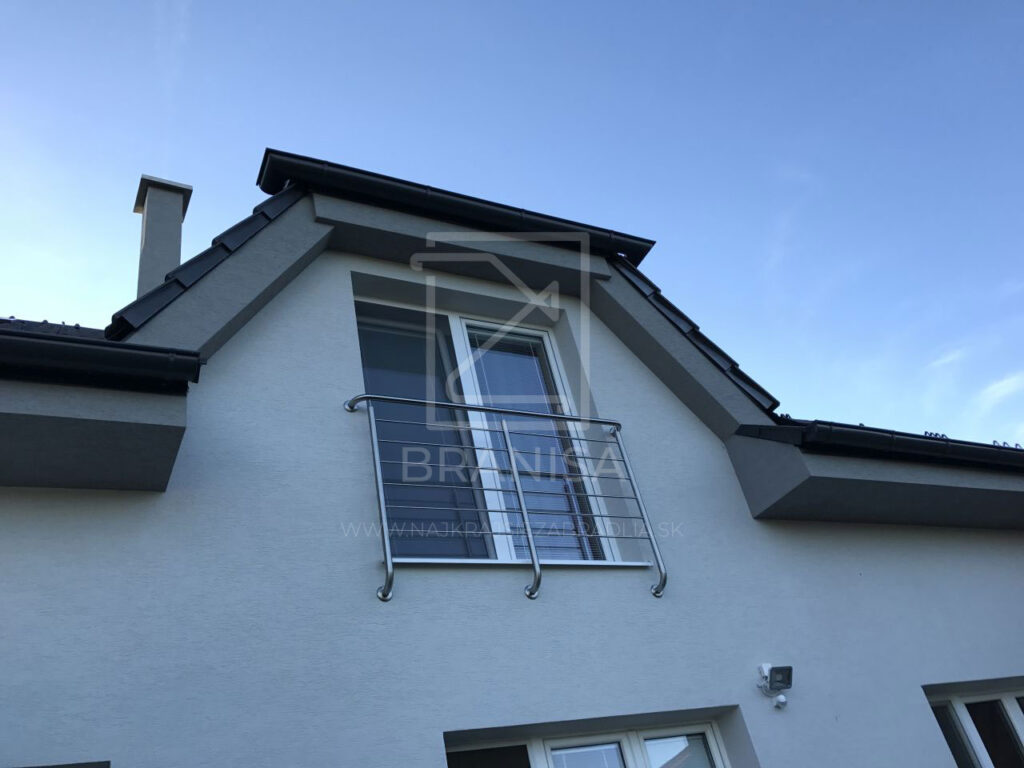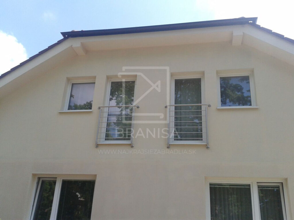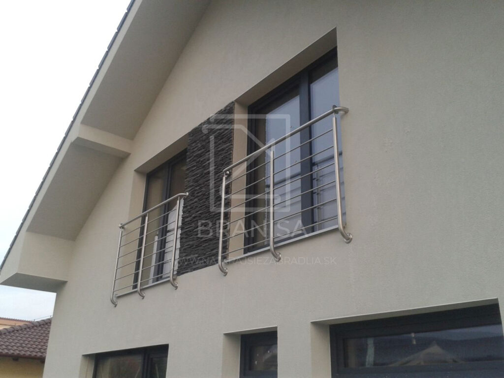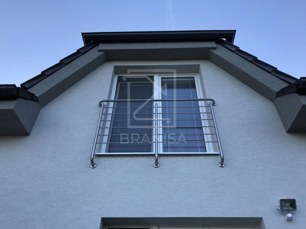 Nerezové zábradlie na Francúzsky balkón ako je na nasledujúcich fotkách môže mať vodorovnú, alebo zvislú výplň. Je kotvené zboku a pri jeho výrobe boli použité kruhové profily.
