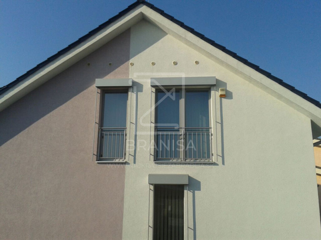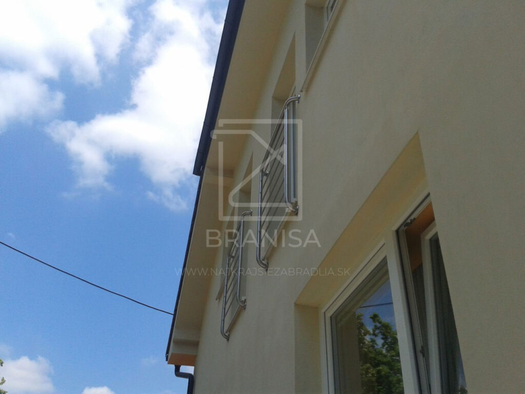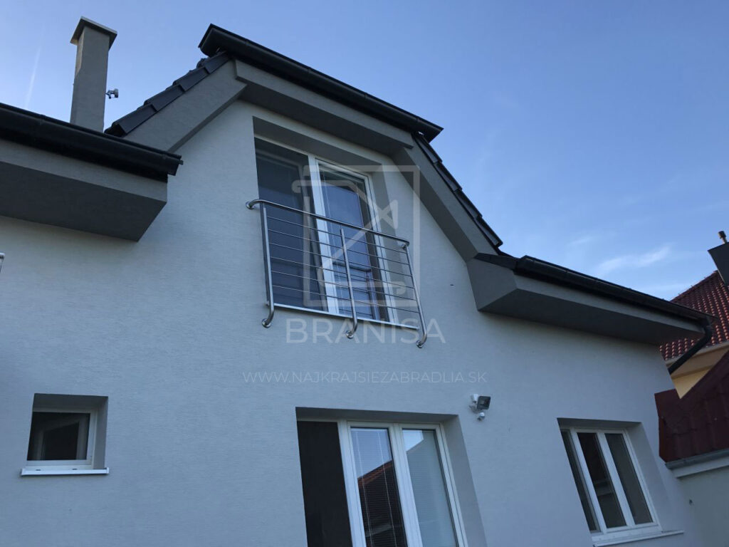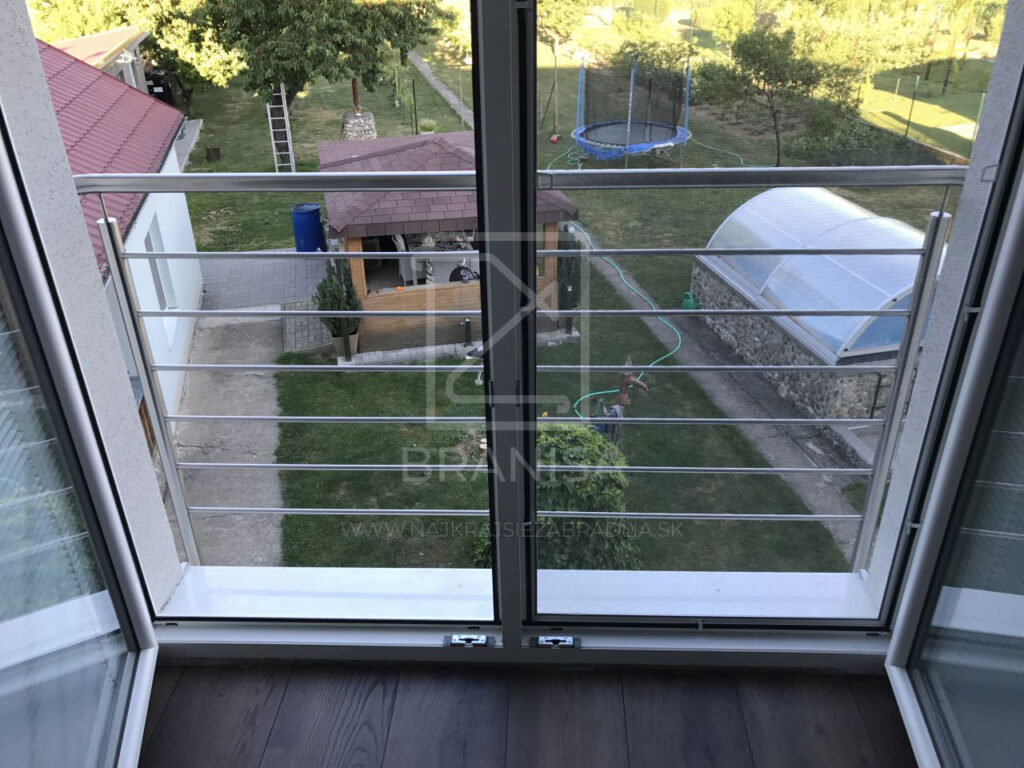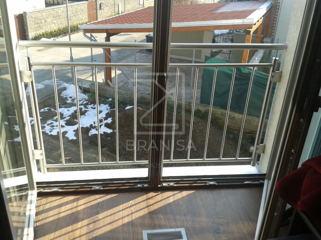 Nerezové zábradlie na Francúzsky balkón ako je na nasledujúcich fotkách môže mať vodorovnú, alebo zvislú výplň. Je kotvené zboku a pri jeho výrobe boli použité kruhové profily.