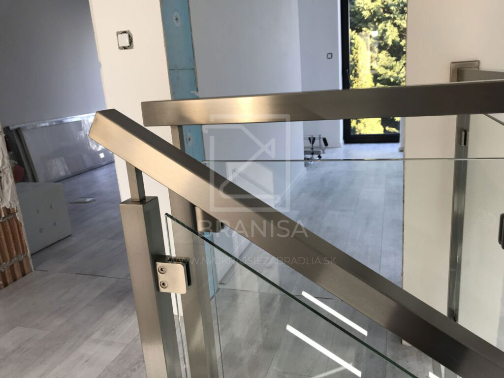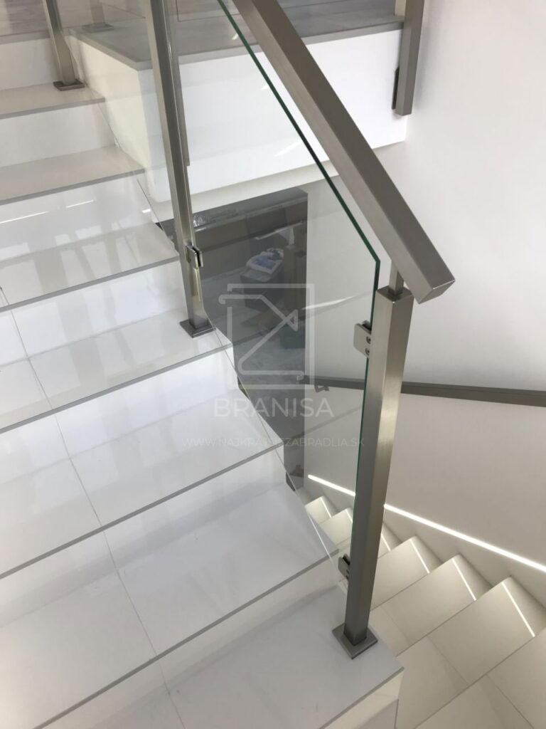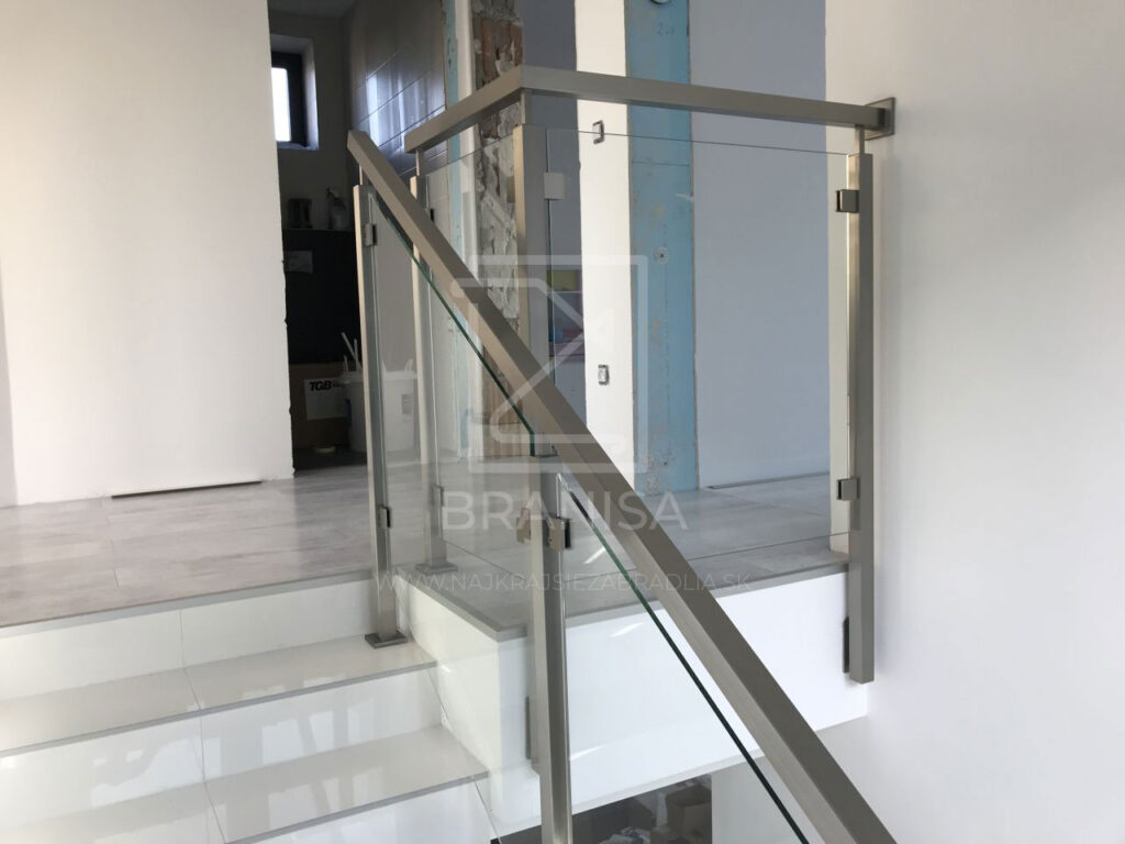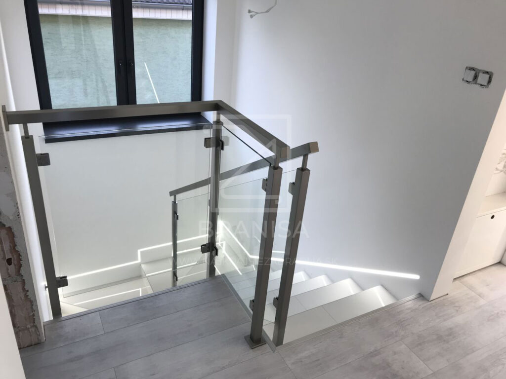 Nerezové zábradlie so sklom na schodisku – Sládkovičovo